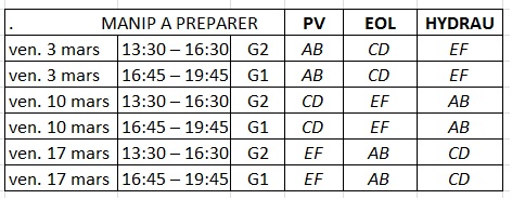 Le tableau joint vous donne le TP à préparer pour chaque séance.